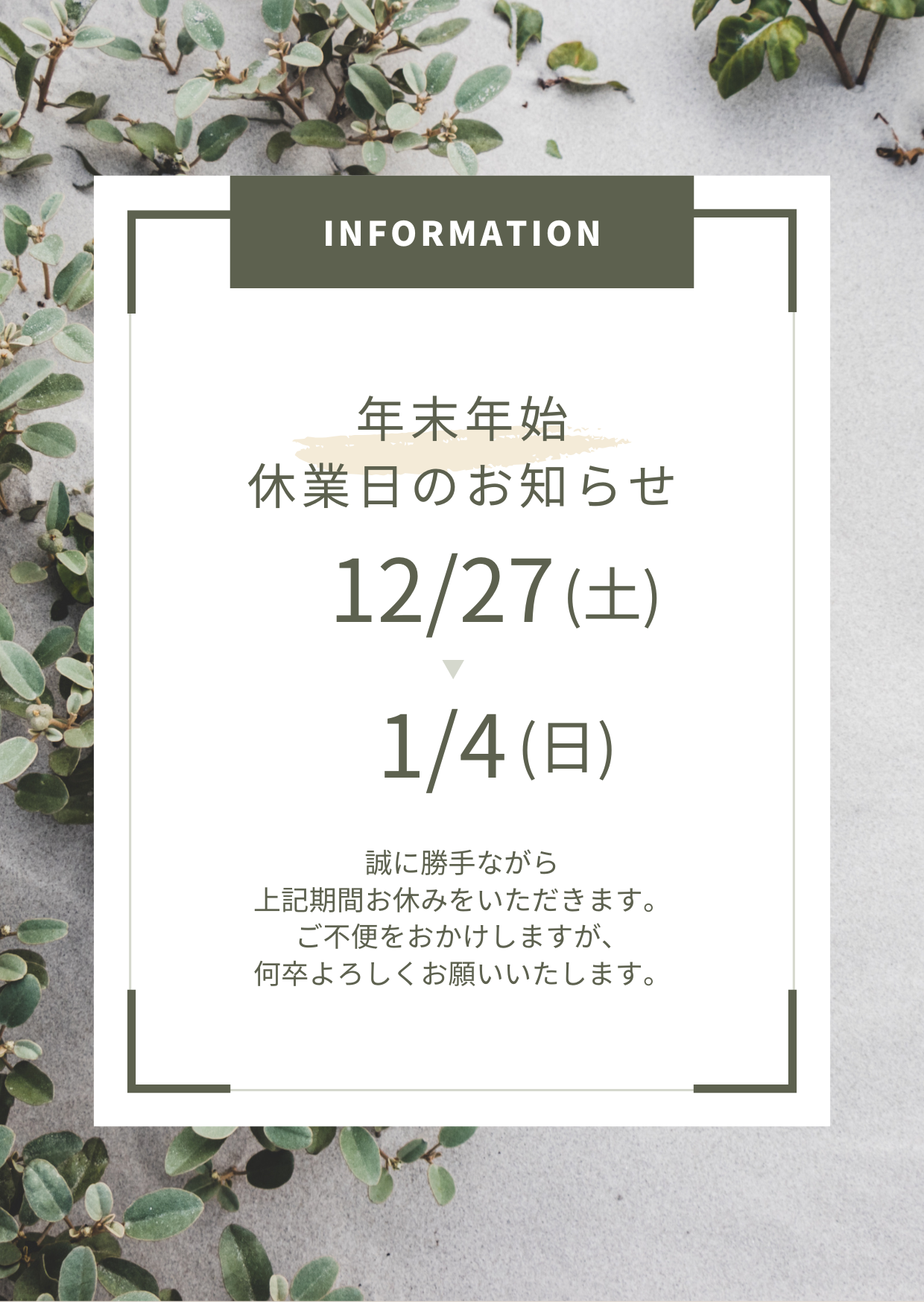 • 25/12/26年末年始休業のお知らせ