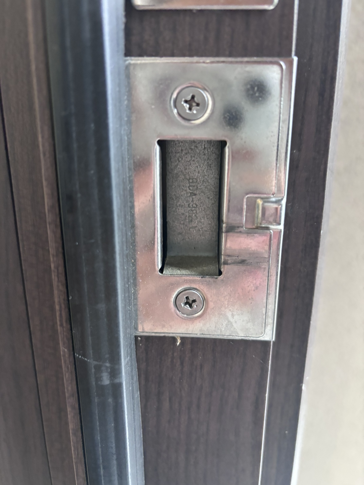①ストライク(ラッチ受け部分)がズレてしまっている。
