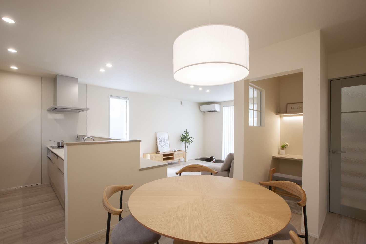 ホーム フォトギャラリー タイプ別 すべて 【WB工法】パステルカラーに包まれる優しい家 【WB工法】パステルカラーに包まれる優しい家 タイプ別|すべて ホワイトベージュでスッキリと魅せる外観 ガルバリウム鋼板と塗壁の異素材で少しのアクセントを加える画像のみを表示全 7 枚中 1 枚目を表示Next ≫ 玄関にドライフラワーのペンダントライト 土間収納はウォークスルーとなっており洗面化粧台へと繋がっています画像のみを表示全 7 枚中 2 枚目を表示≪ Prev|Next ≫ カウンターを長く、ドレッサーとしても使えるアイカ工業スマートサニタリー お家の雰囲気に合わせられる人気の洗面化粧台画像のみを表示全 7 枚中 3 枚目を表示≪ Prev|Next ≫ キッチンと横並びの丸型ダイニングテーブル グレージュ系の色合いにピッタリなデザイン画像のみを表示全 7 枚中 4 枚目を表示≪ Prev|Next ≫ 階段下はちょっとした書斎スペース 室内窓をつけることで圧迫感を抑えデザイン性を高めています画像のみを表示全 7 枚中 5 枚目を表示≪ Prev|Next ≫ リビングは窓を大きく、2面に採用し明るく気持ちの良い空間 画像のみを表示全 7 枚中 6 枚目を表示≪ Prev|Next ≫ ペットや趣味、窓の外に広がるタイルデッキと合わせてBBQなど見るだけでワクワクする土間リビング WB工法で臭いも残らず光熱費を抑えられる使い勝手と夢を両立させる家画像のみを表示全 7 枚中 7 枚目を表示≪ Prev 一覧へ戻る タイプ別 すべて 注文住宅 ソライズ-SOLAiZ リフォーム